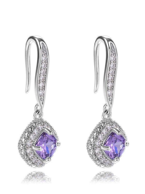 Gorgeous Cubic Zirconia Drop Earrings - Purple